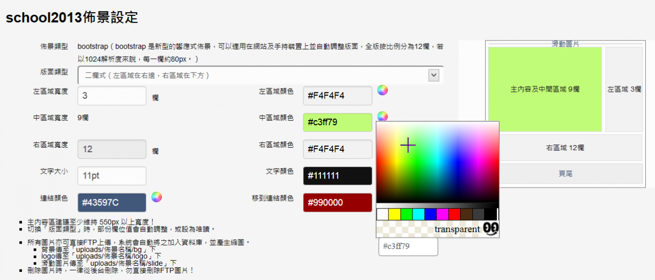 一般來說,佈景要修改都很麻煩,有人要兩欄的,有人要三欄的,有人要換圖,有人要換底色....零零總總的需求,都難免要去修改佈景檔。但修改佈景檔談何容易,因此,製作了此模組,搭配專用佈景,您可以自己設定一個您符合需求的佈景。