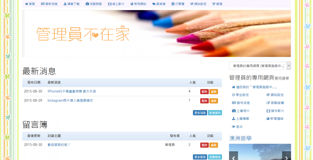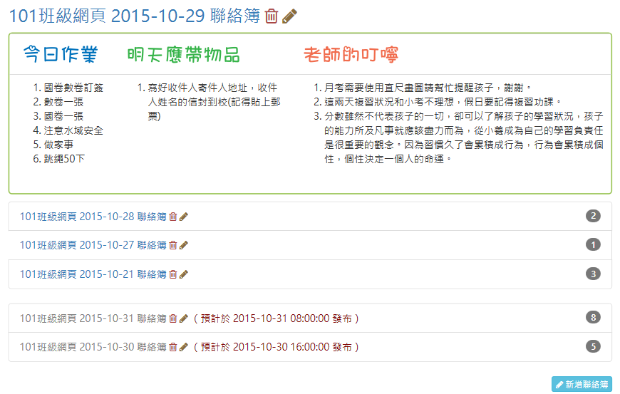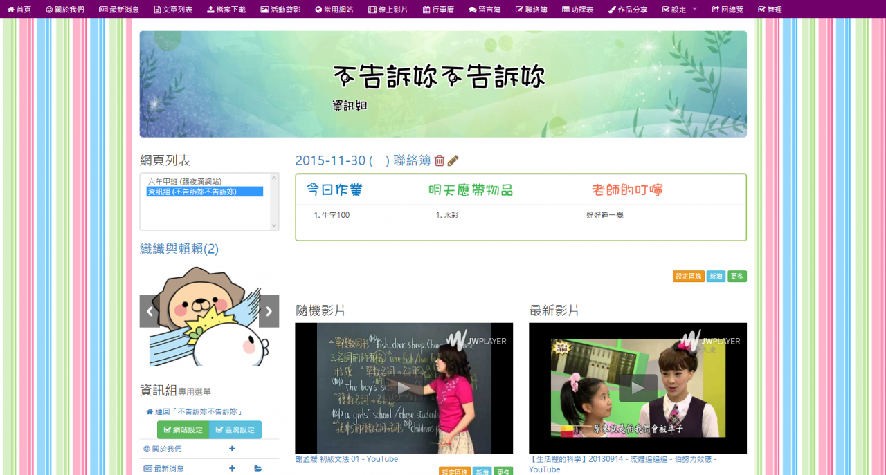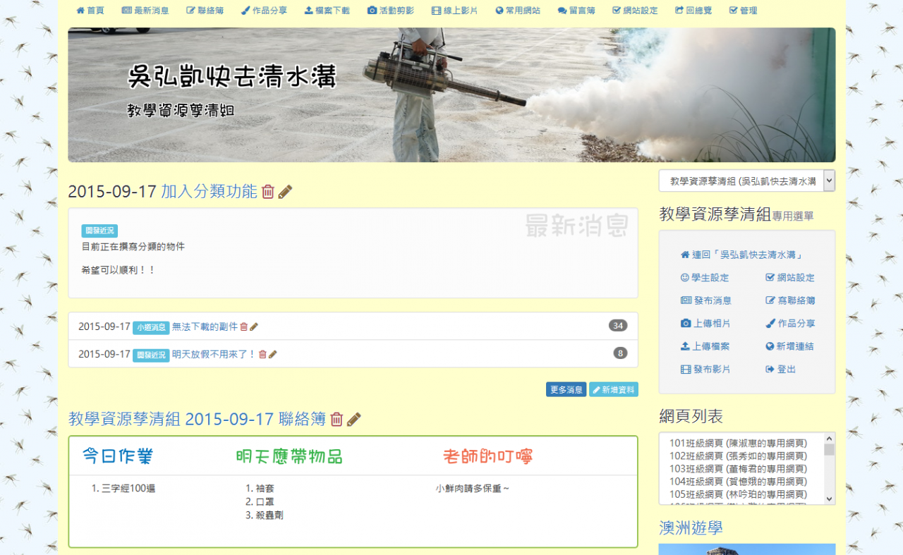 這個模組折磨了我好幾年了,因為陸陸續續一直有需多網管老師建議是否可以寫個班級網頁模組給學校使用,如此便可以擺脫優學網。這是一個有趣的主意, 但架構不小,而且總是被其他工作打斷,此外,也想不出一個比較妥善的架構,因此,一拖就是好幾年。這幾年間,也陸續寫過幾次,但不是寫到無法善後,就是覺 得日後維護不易而作罷!這期間至少重寫了三次以上!