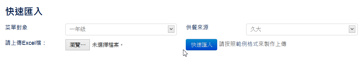 - 支援整批菜單匯入。