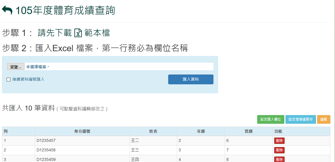 2.管理者可使用查詢關鍵字來修改匯入的EXCEL檔