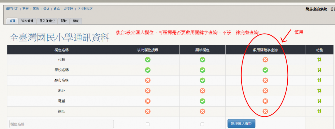 3.後台亦提供直接匯入Excel以建立查詢資料,可自動在第一行欄位名稱設定「搜尋欄位」。